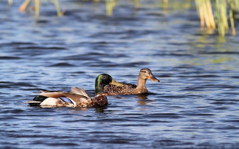 Et par Gråænder på gangbroen ved skjulet i Han Vejle.