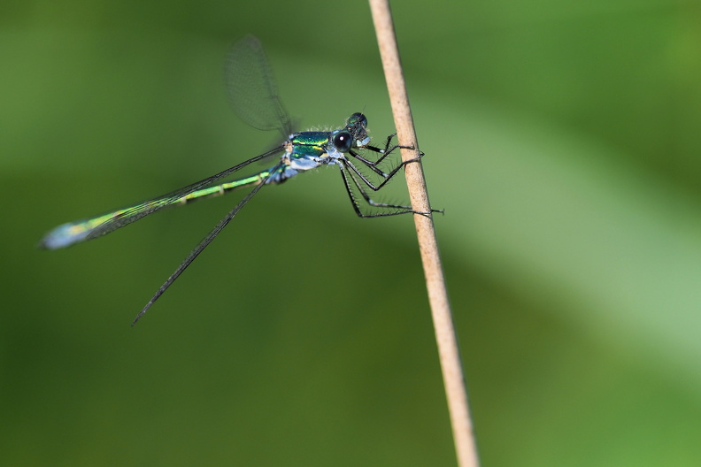 Sortmærket Kobbervandnymfe findes ganske almindeligt mange steder omkring Vejlerne - her en han fra en tilgroet eng i Tømmerby.